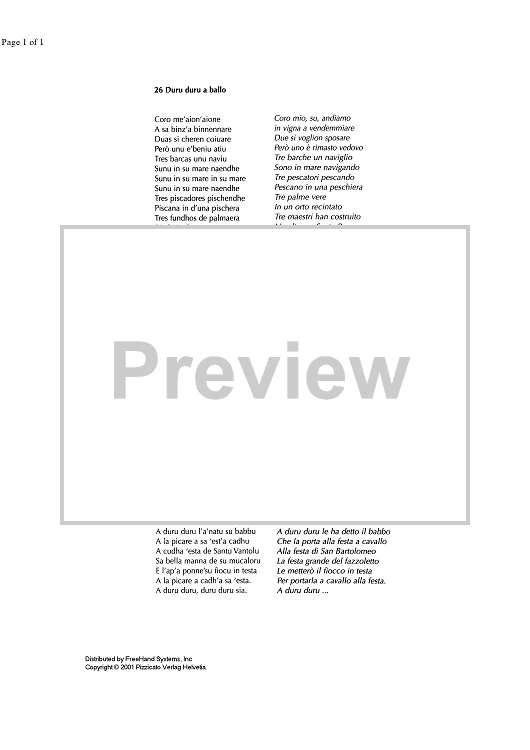 "Duru duru a ballo - Lyrics" Sheet Music by Antonio Sanna