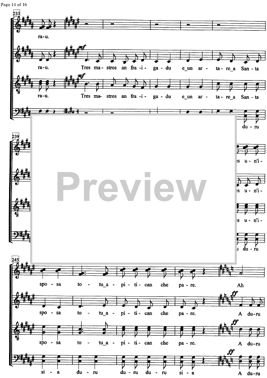 Digital Sheet Music for Duru duru a ballo - Score by , Antonio Sanna scored for SATB Choir; id:345237