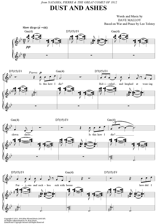 Digital Sheet Music for Dust And Ashes - from Natasha, Pierre & The Great Comet of 1812 by Dave Malloy scored for Piano/Vocal/Chords; id:464798