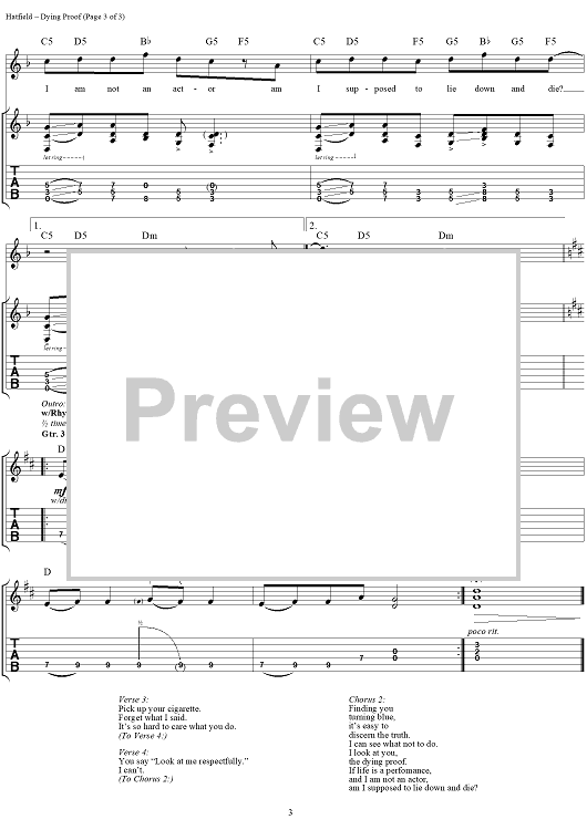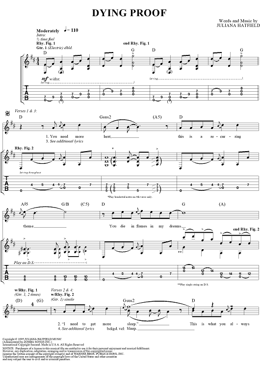 Digital Sheet Music for Dying Proof by Juliana Hatfield scored for Guitar Tab/Vocal; id:267348