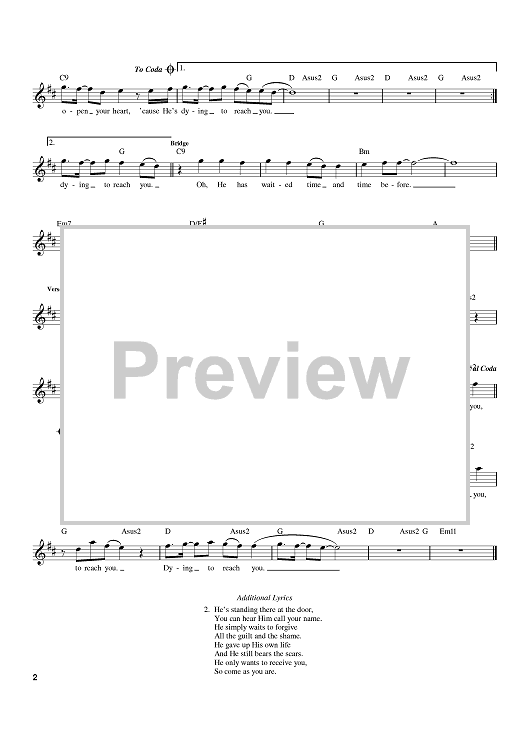 "Dying To Reach You" Sheet Music by Point of Grace