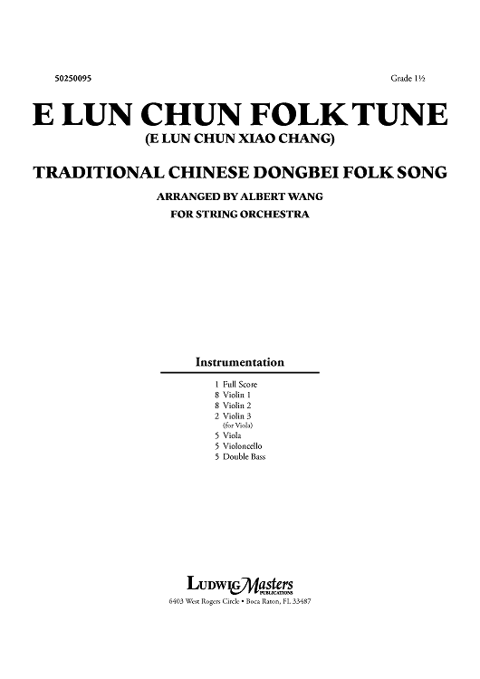 Digital Sheet Music for E Lun Chun Folk Tune (E Lun Chun Xiao Chang) - Score by Traditional, Albert Wang scored for String Orchestra; id:458827