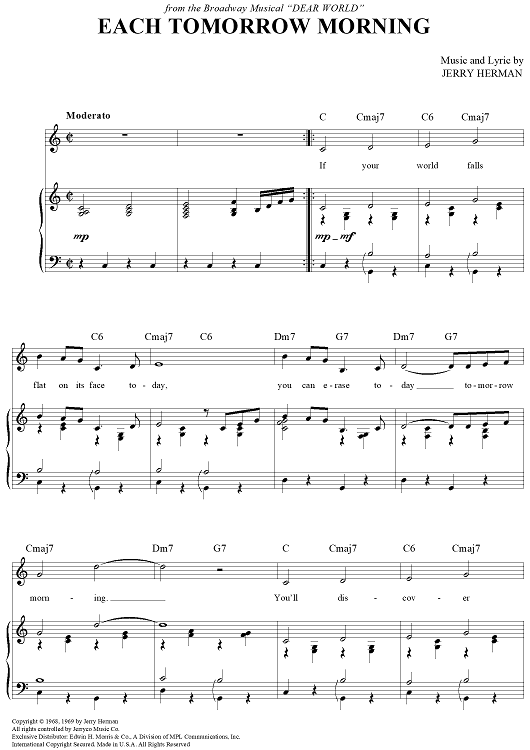 "Each Tomorrow Morning" Sheet Music by Jerry Herman