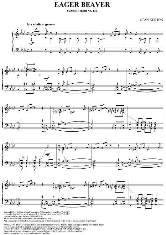 Digital Sheet Music for Eager Beaver by Stan Kenton scored for Piano Solo; id:314342