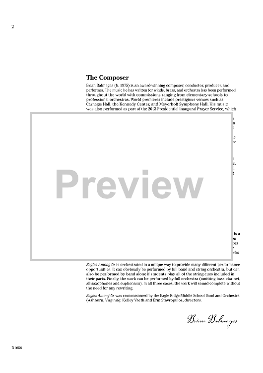 Digital Sheet Music for Eagles Among Us - Score by Brian Balmages scored for Concert Band / Symphony Orchestra; id:497080