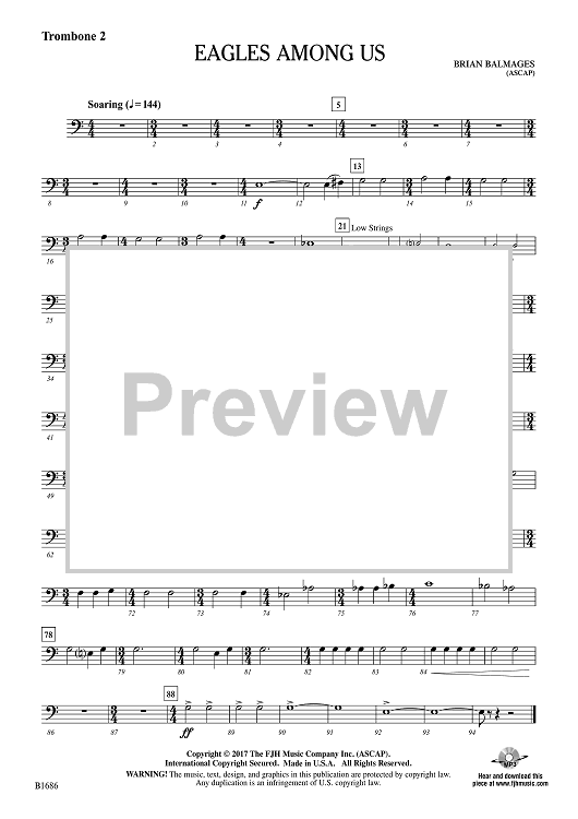 Digital Sheet Music for Eagles Among Us - Trombone 2 by Brian Balmages scored for Concert Band / Symphony Orchestra; id:510274