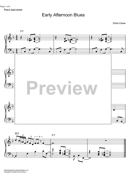 Digital Sheet Music for Early Afternoon Blues by , Chick Corea scored for Lead Sheet; id:322573