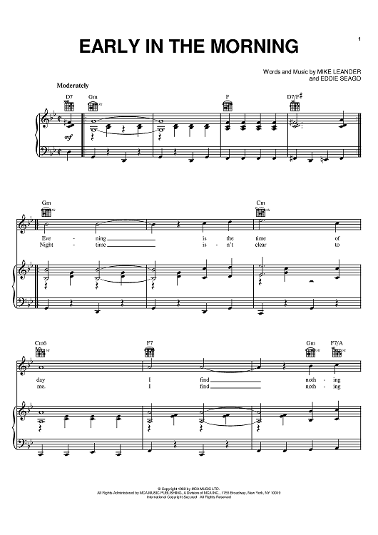 Digital Sheet Music for Early In The Morning by Mike Leander, Eddie Seago, Vanity Fare scored for Piano/Vocal/Chords; id:382047