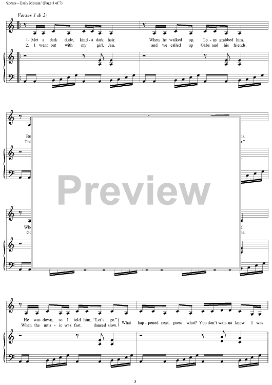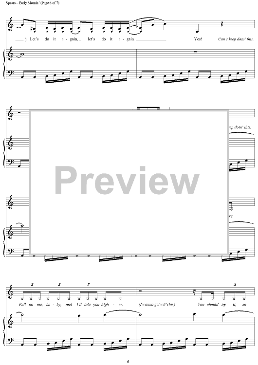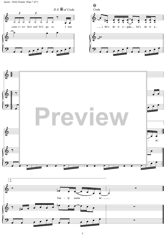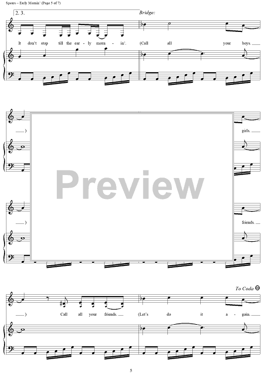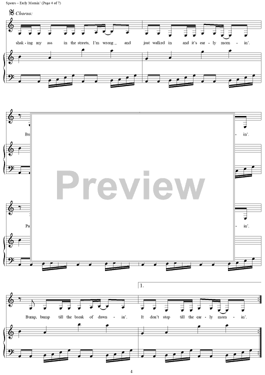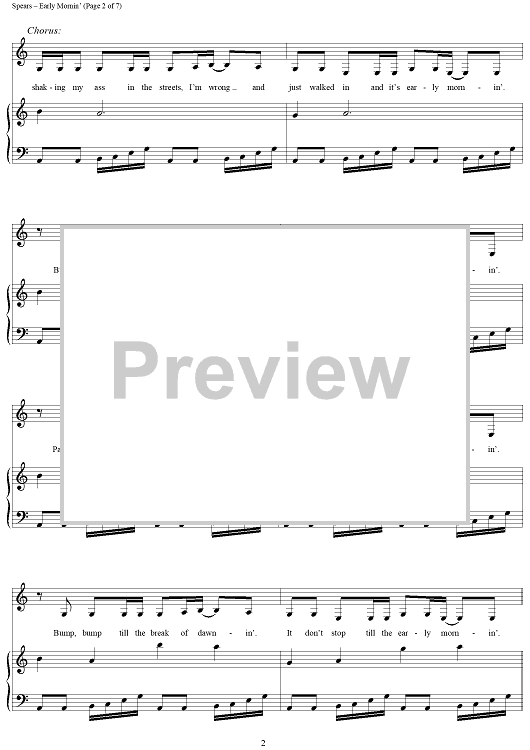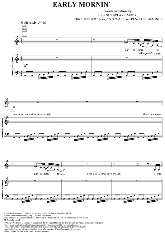 Digital Sheet Music for Early Mornin' by Moby, Penelope Magnet, Tricky Stewart, Britney Spears scored for Piano/Vocal/Chords; id:311510