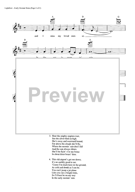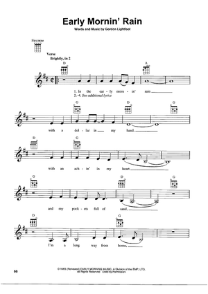 "Early Mornin' Rain" Sheet Music by Gordon Lightfoot
