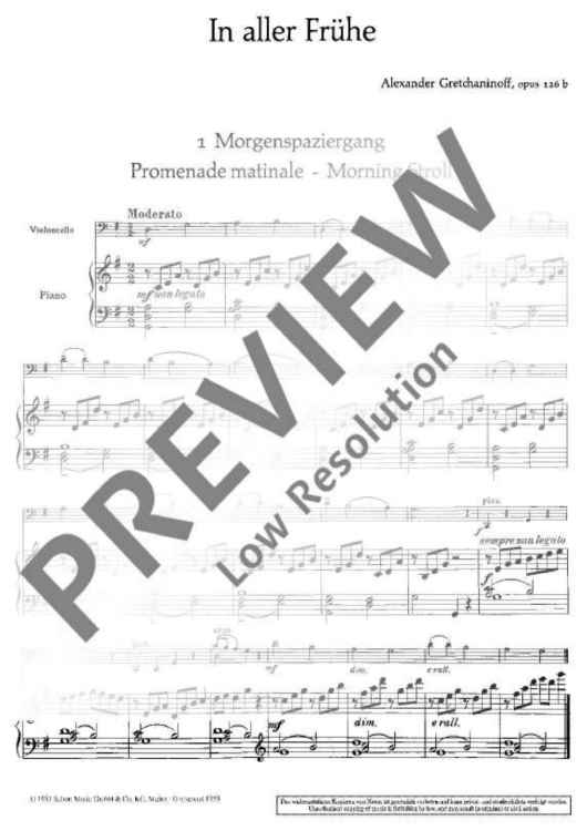 Digital Sheet Music for Early morning by Franz Willms, Alexandr Gretchaninow scored for Cello And Piano; id:472584