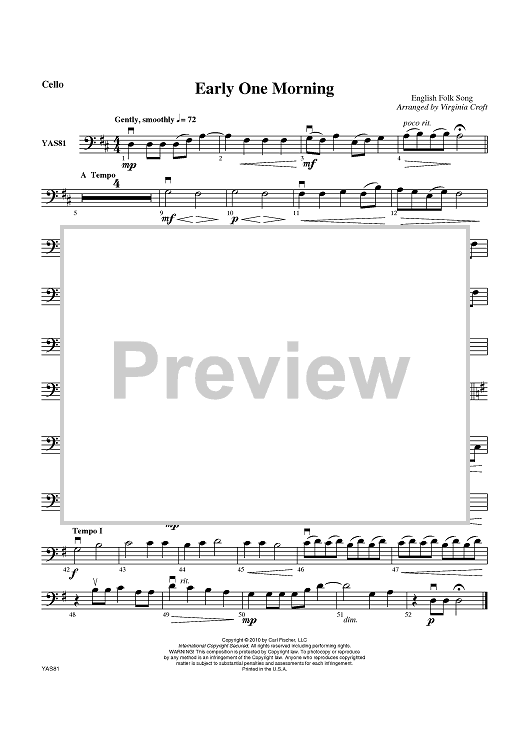 "Early One Morning - Cello" Sheet Music by English Folk Song