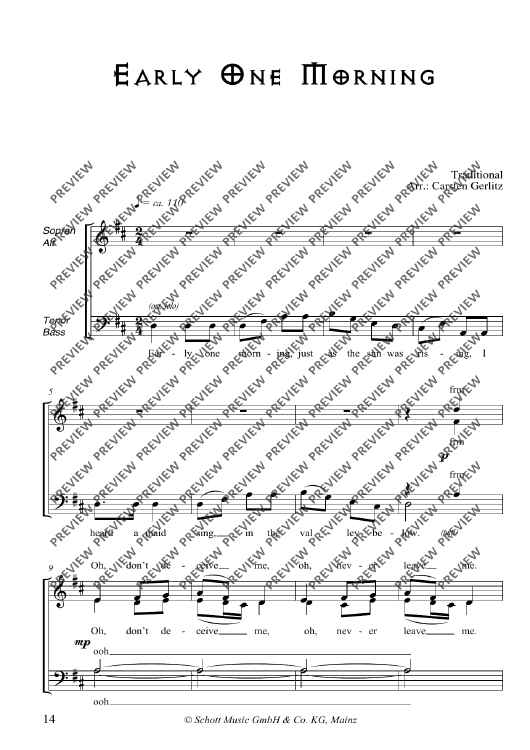 Digital Sheet Music for Early One Morning by Carsten Gerlitz scored for Mixed Choir (satb); id:493277