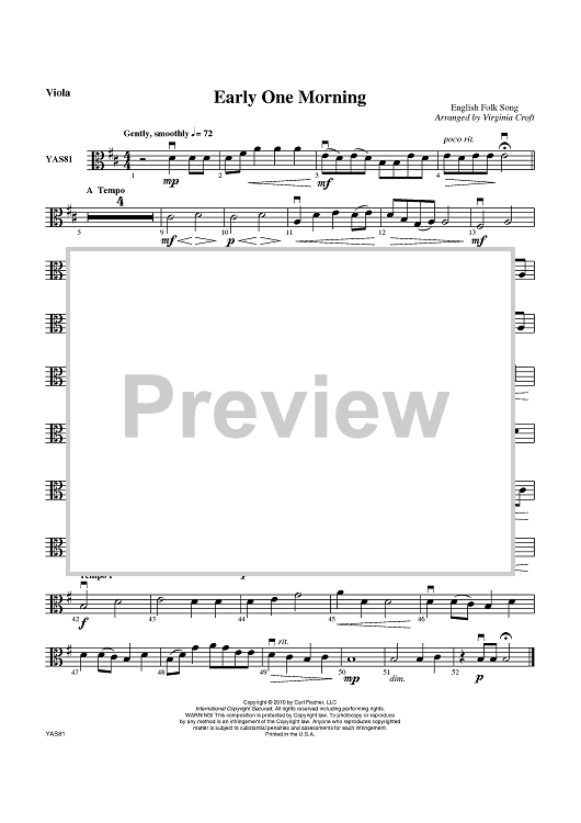 "Early One Morning - Viola" Sheet Music by English Folk Song