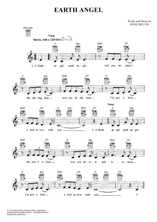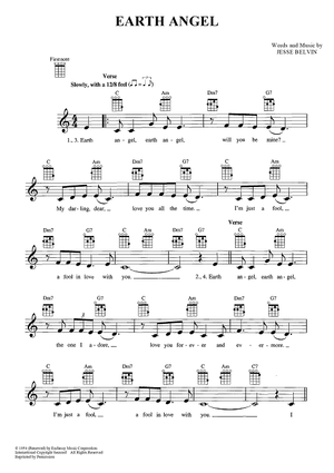 Digital Sheet Music for Earth Angel by The Penguins, Jesse Belvin scored for Ukulele/Vocal; id:445607