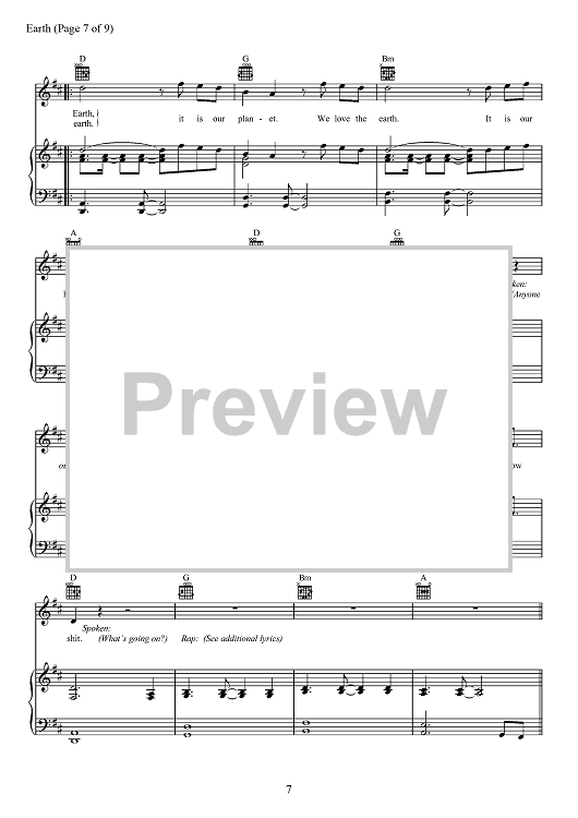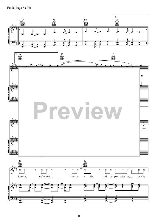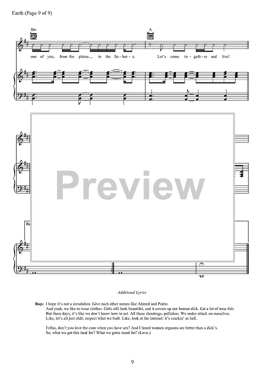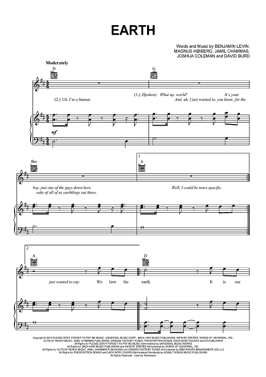 Digital Sheet Music for Earth by Benjamin Levin, Ammo, Jamil Chammas, Lil Dicky, Magnus Holberg scored for Piano/Vocal/Chords; id:467517