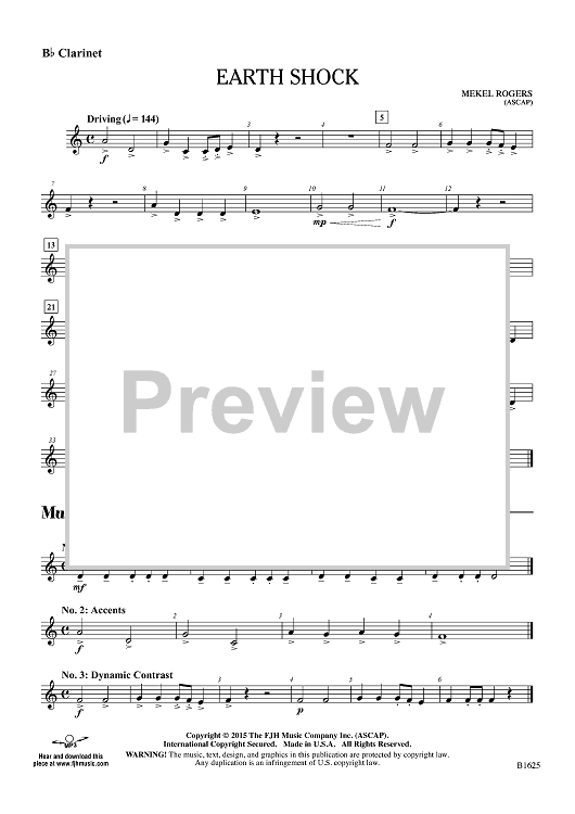 Digital Sheet Music for Earth Shock - Bb Clarinet by Mekel Rogers scored for Concert Band; id:454720