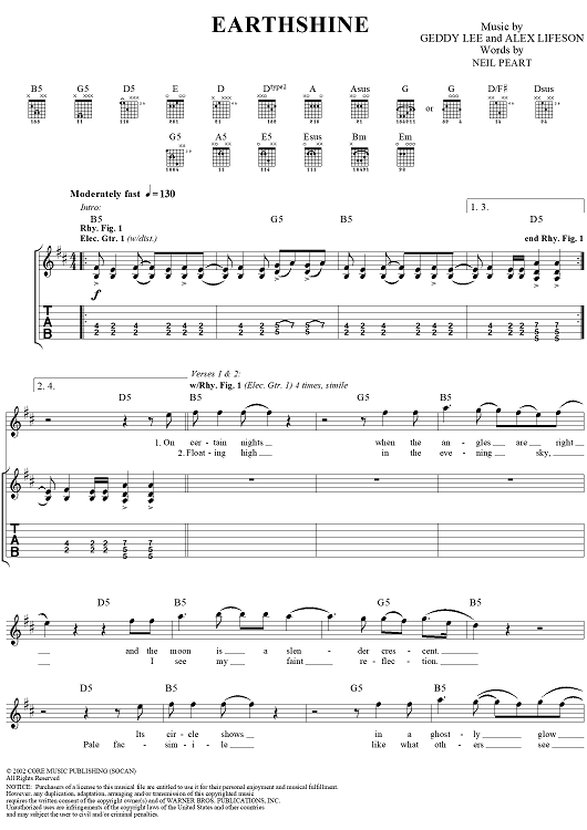 "Earthshine" Sheet Music by Rush