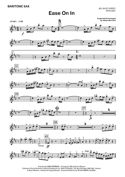 "Ease on It - Baritone Saxophone" Sheet Music by James Morrison