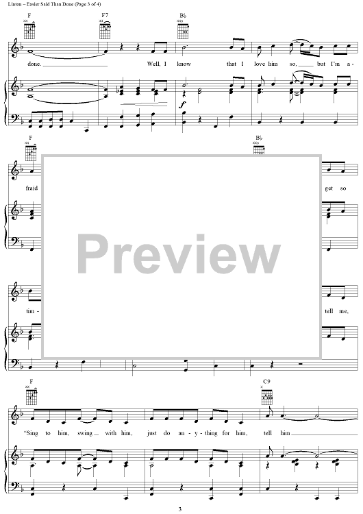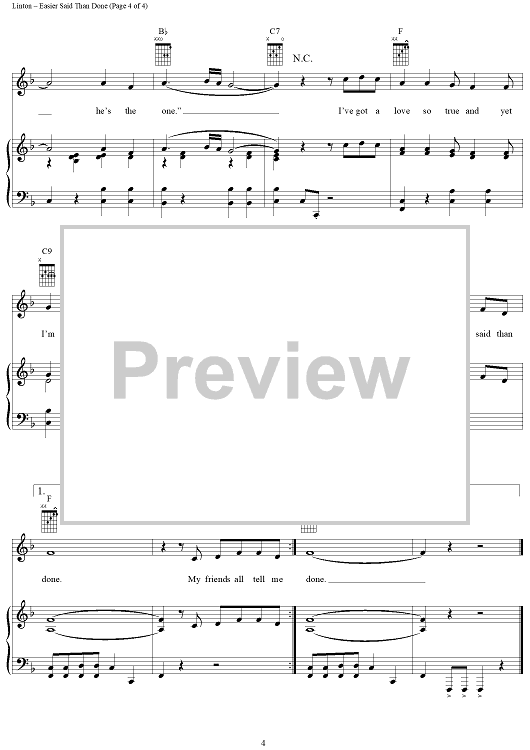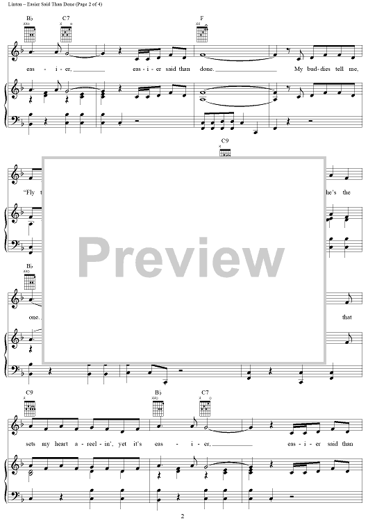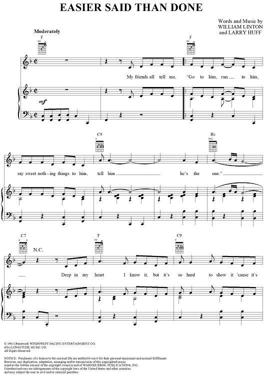 Digital Sheet Music for Easier Said Than Done by William Linton, Larry Huff, The Essex scored for Piano/Vocal/Chords; id:235397