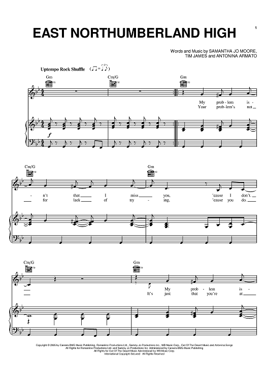 Digital Sheet Music for East Northumberland High by Antonina Armato, Tim James, Miley Cyrus, Samantha Jo Moore scored for Piano/Vocal/Chords; id:401114