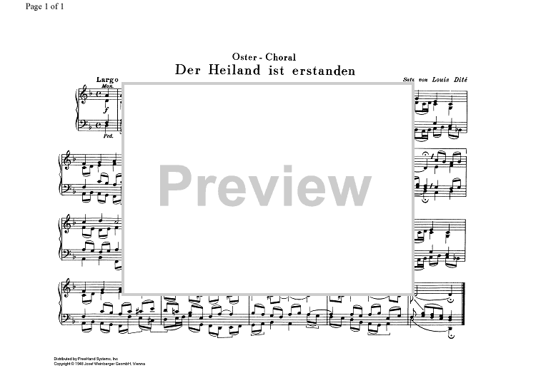Digital Sheet Music for Easter choral: Der Heiland ist erstanden by Louis Dité, Traditional scored for Organ Solo; id:338331