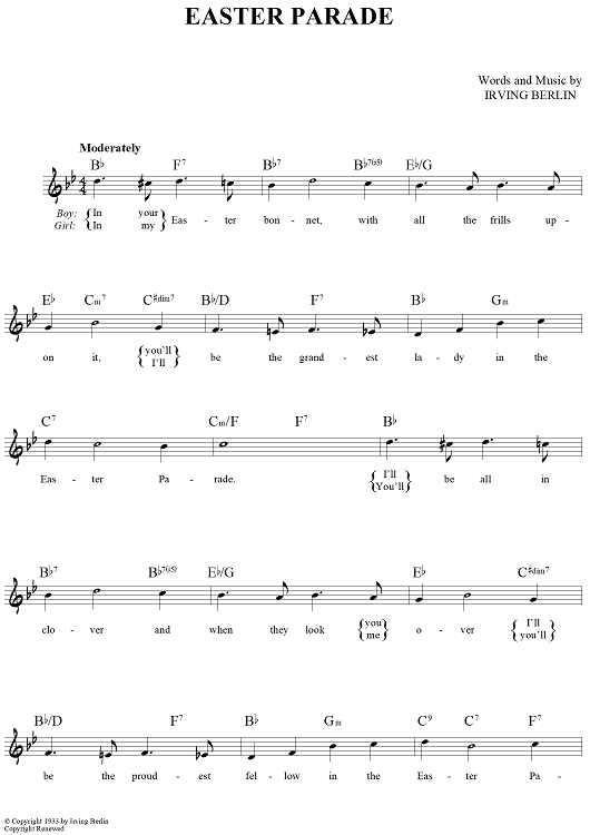 Digital Sheet Music for Easter Parade by Irving Berlin scored for Lead Sheet; id:441518