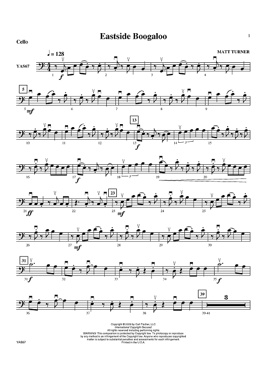 Digital Sheet Music for Eastside Boogaloo - Cello by Matt Turner scored for Orchestra; id:408376