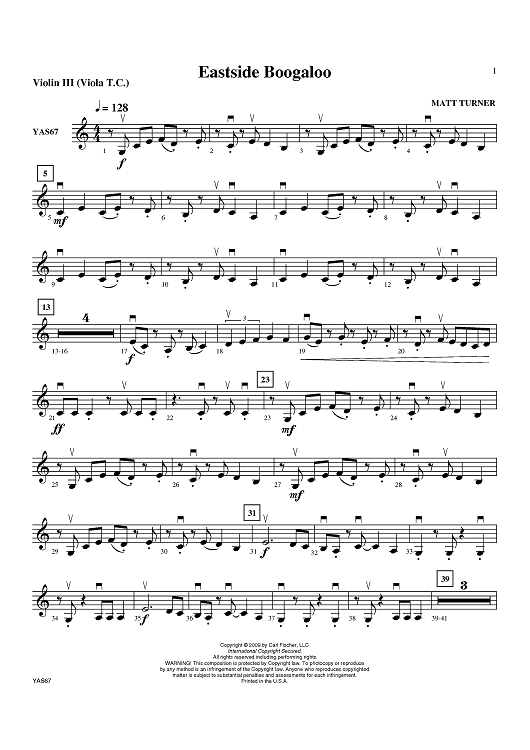 Digital Sheet Music for Eastside Boogaloo - Violin 3 by Matt Turner scored for Orchestra; id:408374