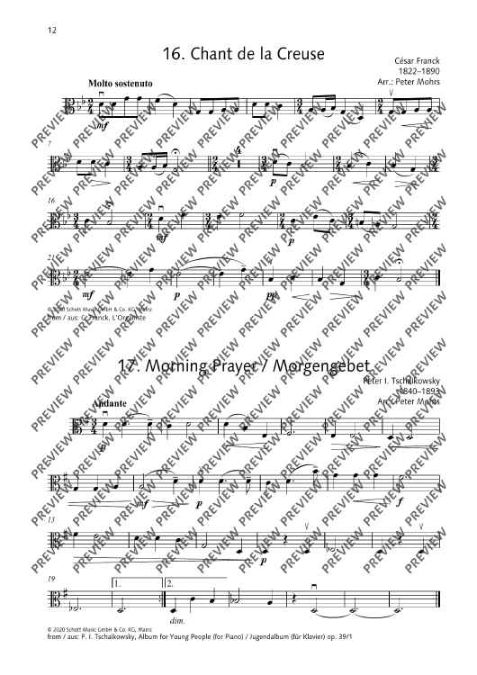 Suitable for young and adult beginners alike, the pieces with their wide variety of style just seem to be right for concerts as well as for performances in a sacred context. While some of the pieces were written by the composers for a set of four string parts, the editor also used piano works which he arranged for string quartet as closely to the original as possible.