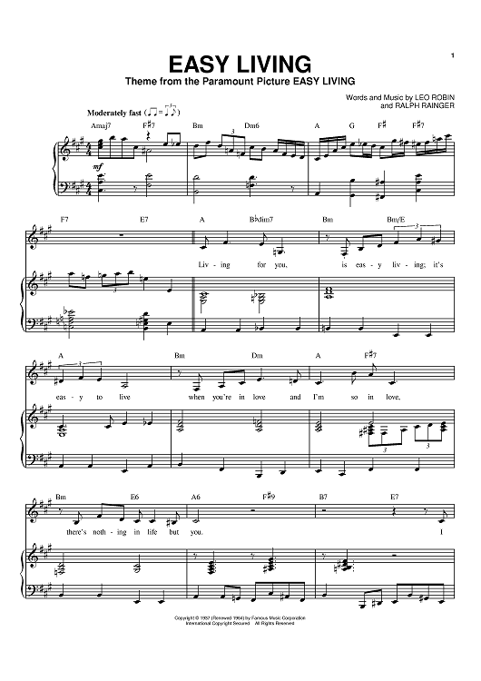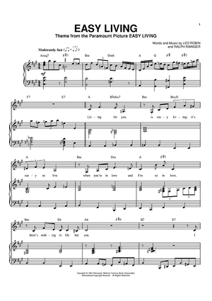 Digital Sheet Music for Easy Living by Billie Holiday, Leo Robin, Ralph Rainger scored for Piano/Vocal/Chords; id:369379