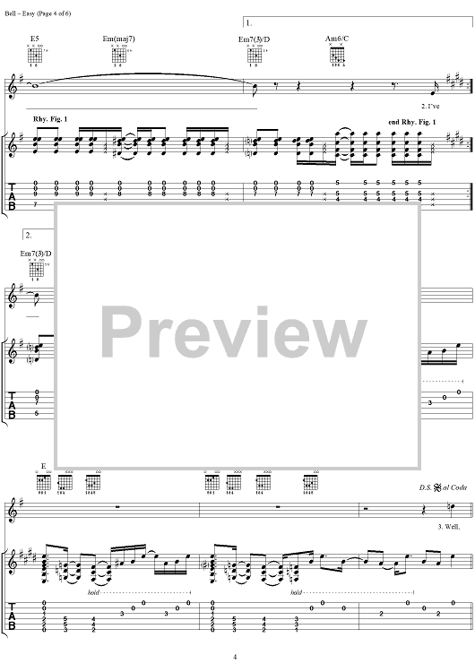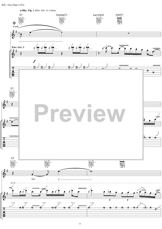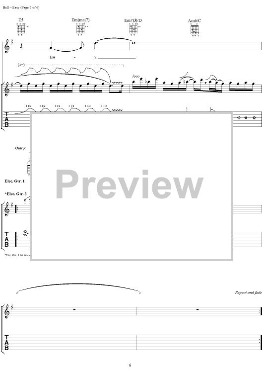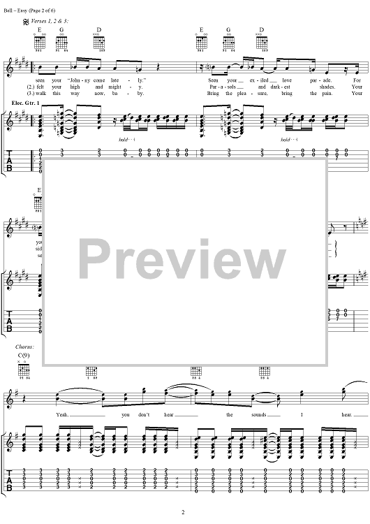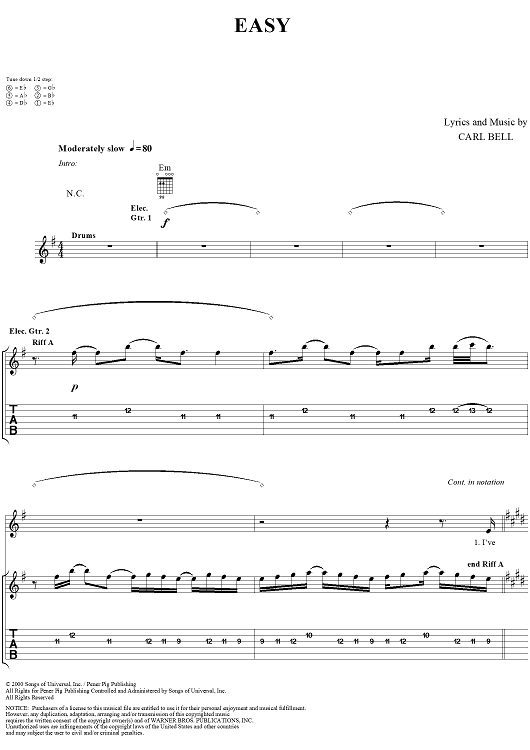 Digital Sheet Music for Easy by Fuel, Carl Bell scored for Guitar Tab/Vocal; id:284163
