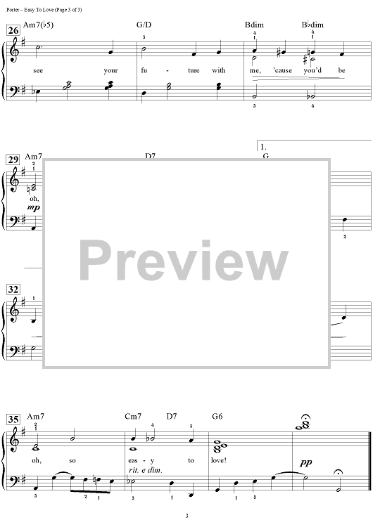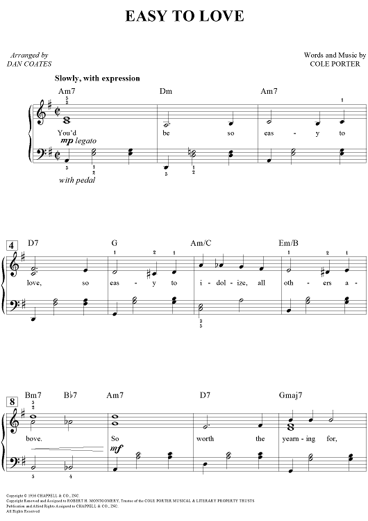 Digital Sheet Music for Easy To Love by Dan Coates, Cole Porter scored for Easy Piano/Vocal/Chords; id:456666