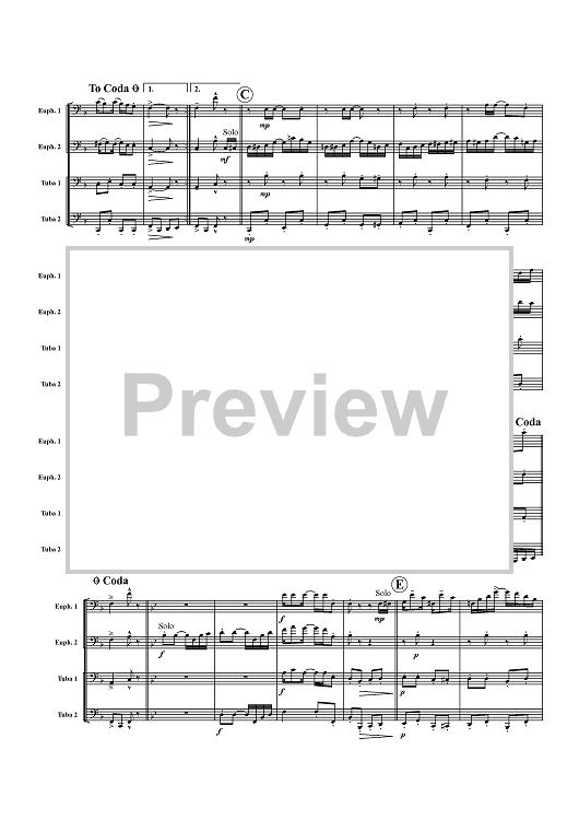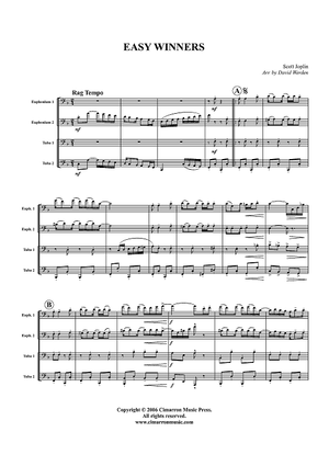 Digital Sheet Music for Easy Winners - Score by Scott Joplin, David Werden scored for Tuba Quartet; id:357605