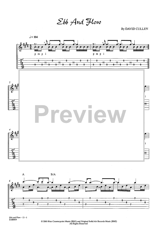 Digital Sheet Music for Ebb And Flow (With Embedded Audio) by David Cullen scored for Guitar Tab; id:453130