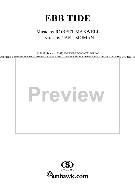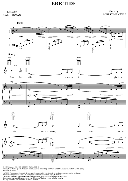 Digital Sheet Music for Ebb Tide by Robert Maxwell, Carl Sigman scored for Piano/Vocal/Chords; id:120599