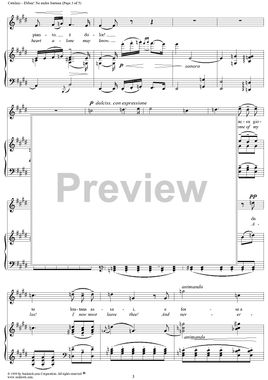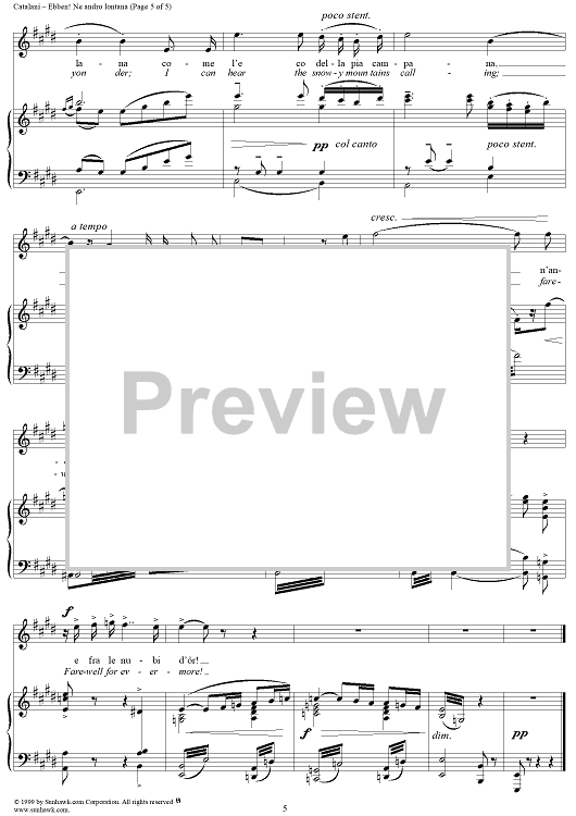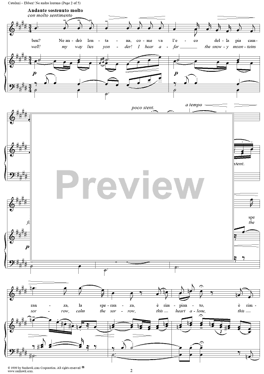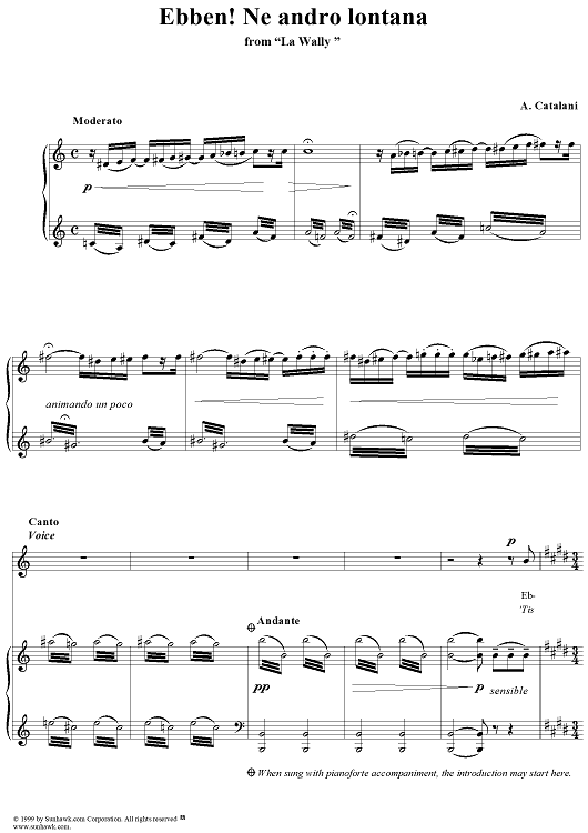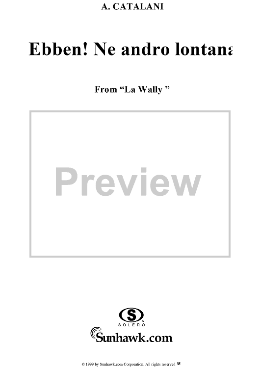 Digital Sheet Music for Ebben? Ne andrò lontana by Alfredo Catalani scored for Voice/Piano; id:216748