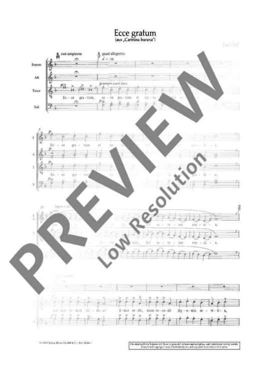 Digital Sheet Music for Ecce gratum - Choral Score by Carl Orff scored for Mixed Choir (satb) And Piano (4 Hands); id:473765