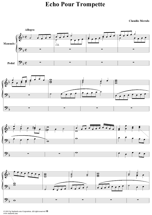 Digital Sheet Music for Echo pour Trompette by Claudio Merulo scored for Organ Solo; id:251998