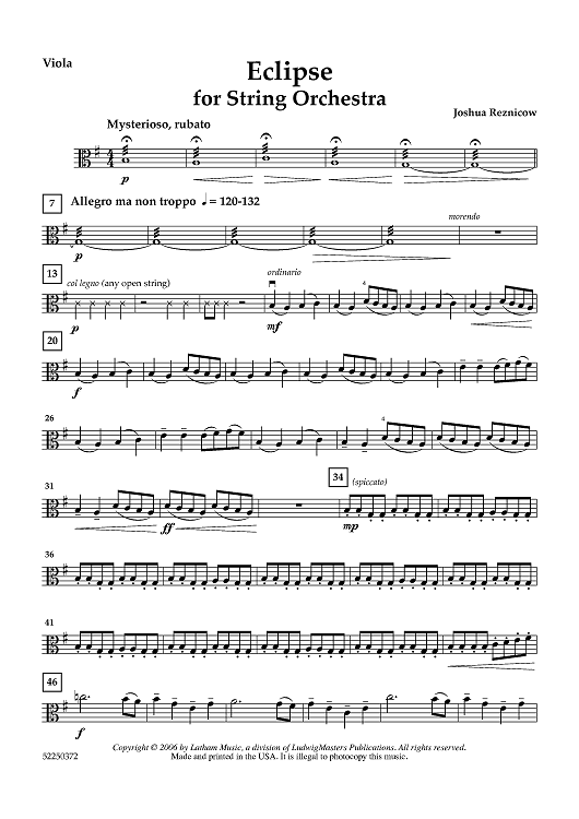 Digital Sheet Music for Eclipse - Viola by Joshua Reznicow scored for String Orchestra; id:458472