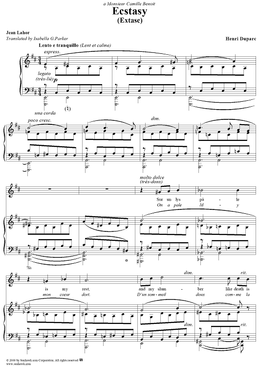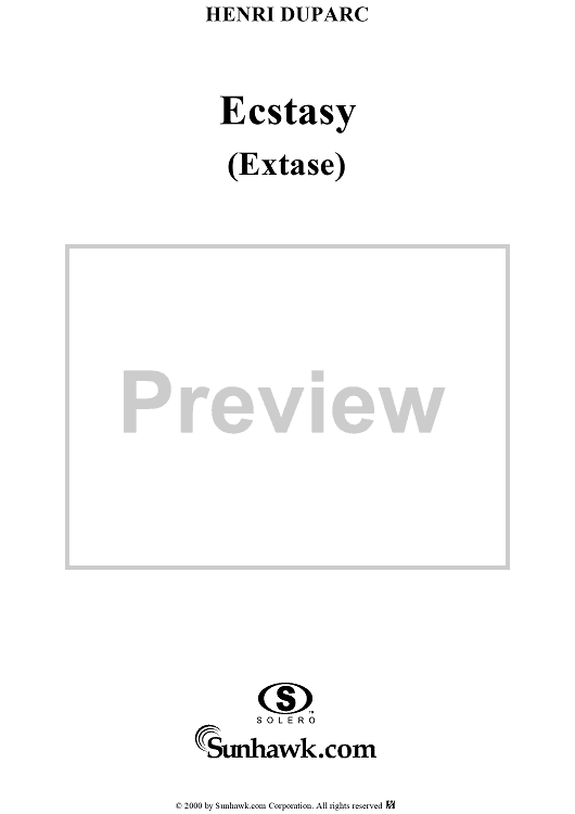 "Ecstasy - (Extase)" Sheet Music by Henri Duparc