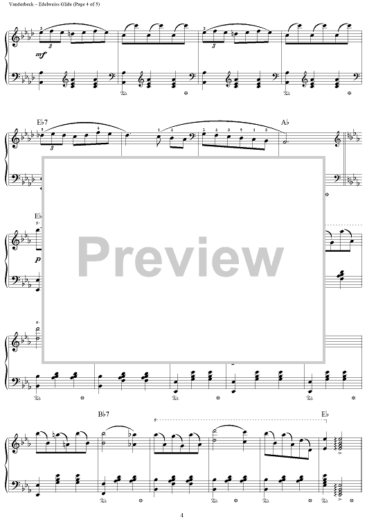 Digital Sheet Music for Edelweiss Glide by Friedric Eduard Vanderbeck scored for Piano Solo; id:265156