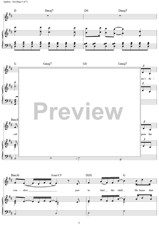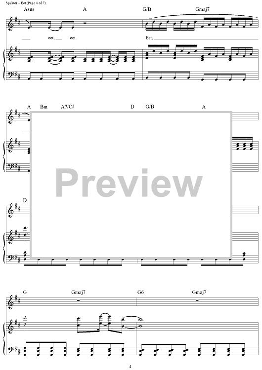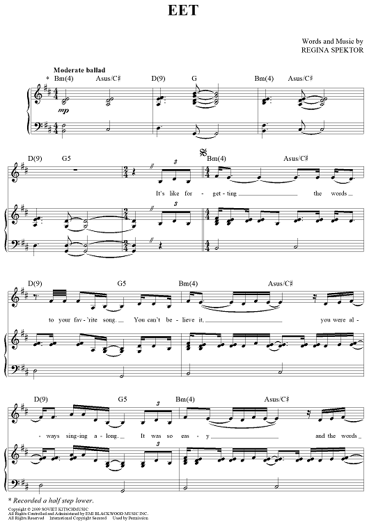 Digital Sheet Music for Eet by Regina Spektor scored for Piano/Vocal/Chords; id:444059