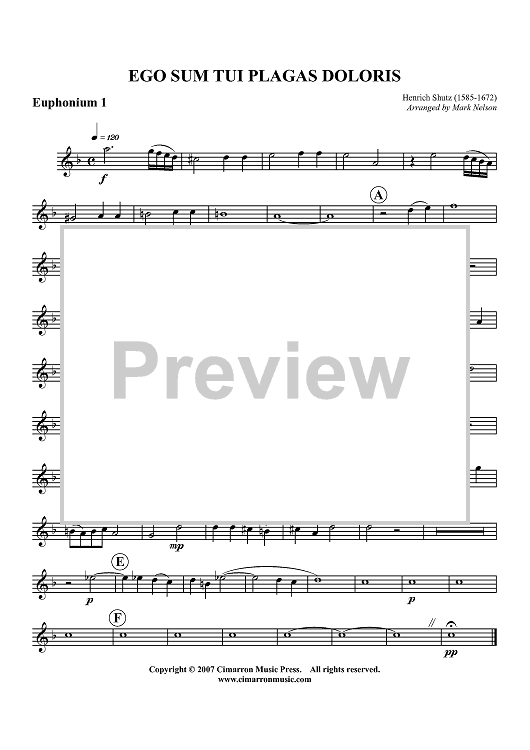 "Ego Sum Tui Plagas Doloris - Euphonium 1 BC/TC" Sheet Music by Heinrich Schütz