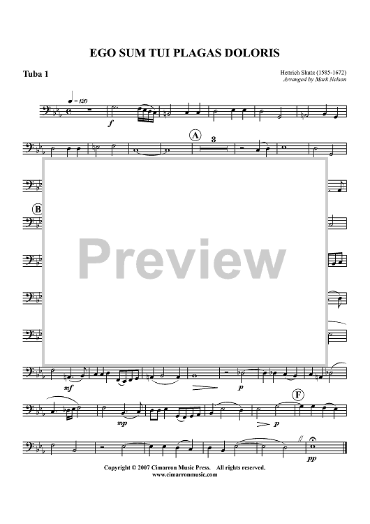 Digital Sheet Music for Ego Sum Tui Plagas Doloris - Tuba 1 by Heinrich Schütz, Mark Nelson scored for Tuba Quartet; id:416541