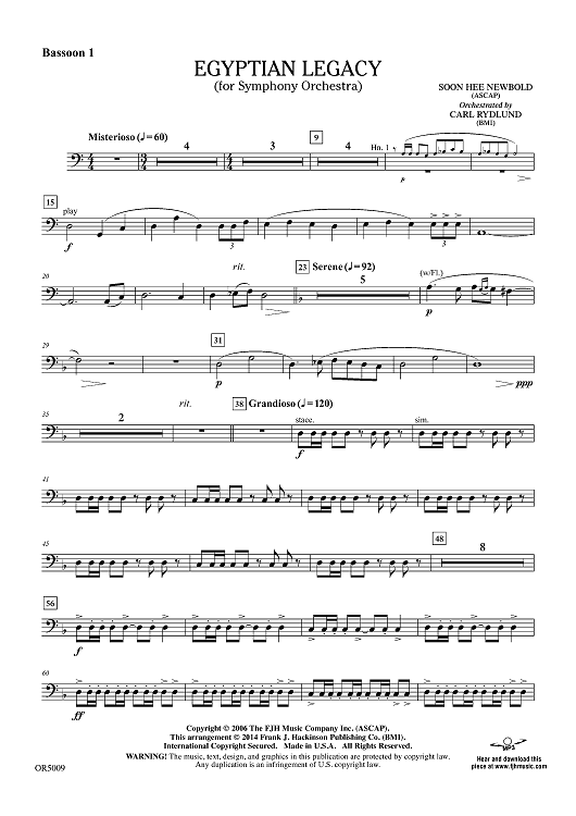 Digital Sheet Music for Egyptian Legacy - Bassoon 1 by Soon Hee Newbold, Carl Rydlund scored for Orchestra; id:446852