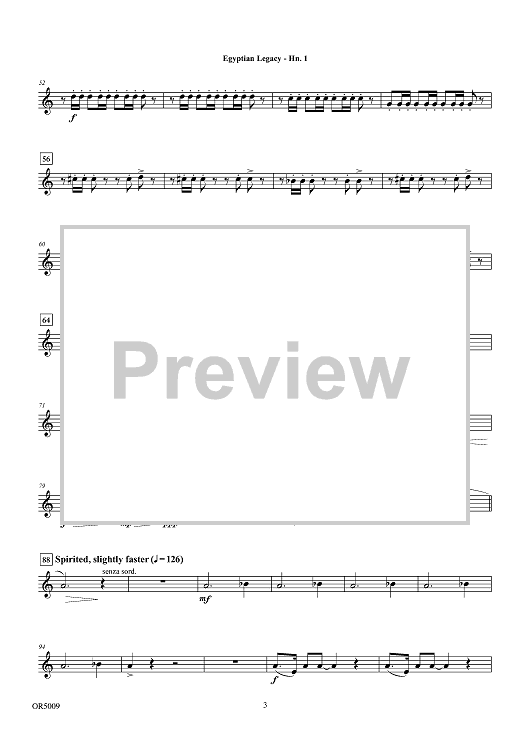 Digital Sheet Music for Egyptian Legacy - F Horn 1 by Soon Hee Newbold, Carl Rydlund scored for Orchestra; id:446854