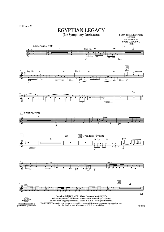 Digital Sheet Music for Egyptian Legacy - F Horn 2 by Soon Hee Newbold, Carl Rydlund scored for Orchestra; id:446855