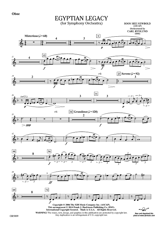 Digital Sheet Music for Egyptian Legacy - Oboe by Soon Hee Newbold, Carl Rydlund scored for Orchestra; id:446848