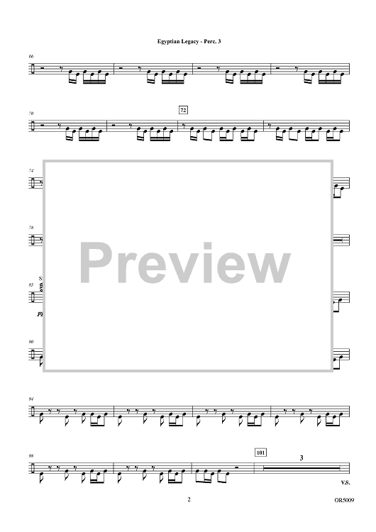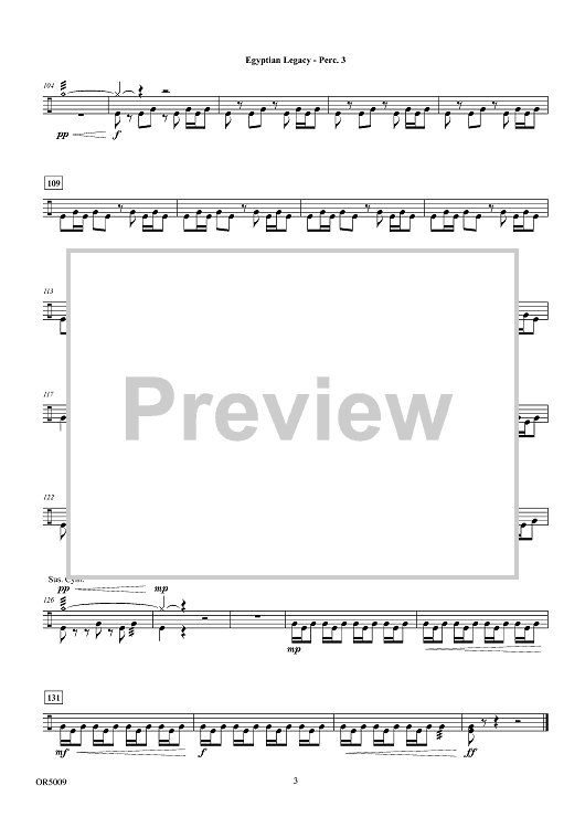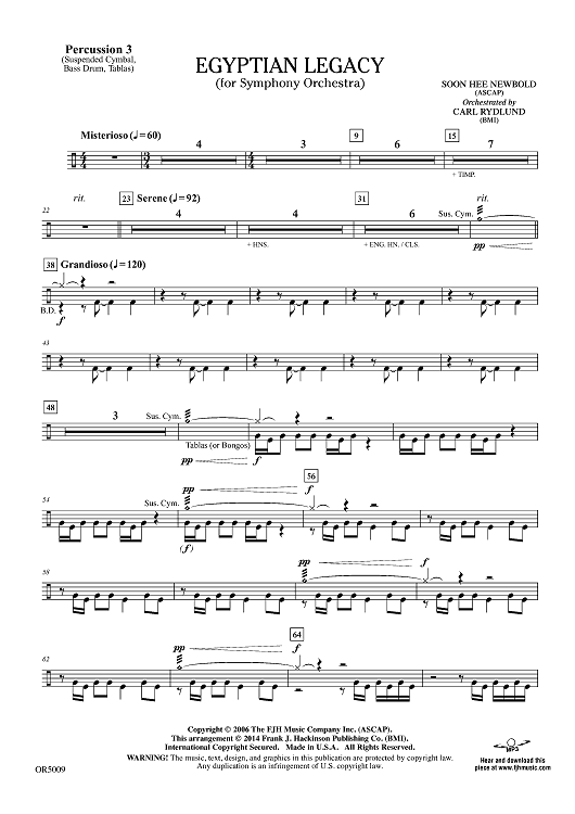 Digital Sheet Music for Egyptian Legacy - Percussion 3 by Soon Hee Newbold, Carl Rydlund scored for Orchestra; id:446868